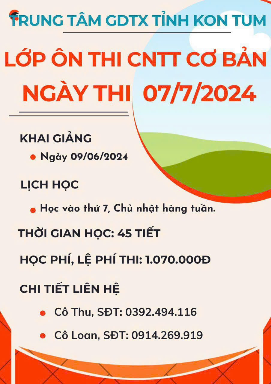 Thông báo mở lớp ôn, thi CNTT cơ bản khóa thi ngày 7/7/2024