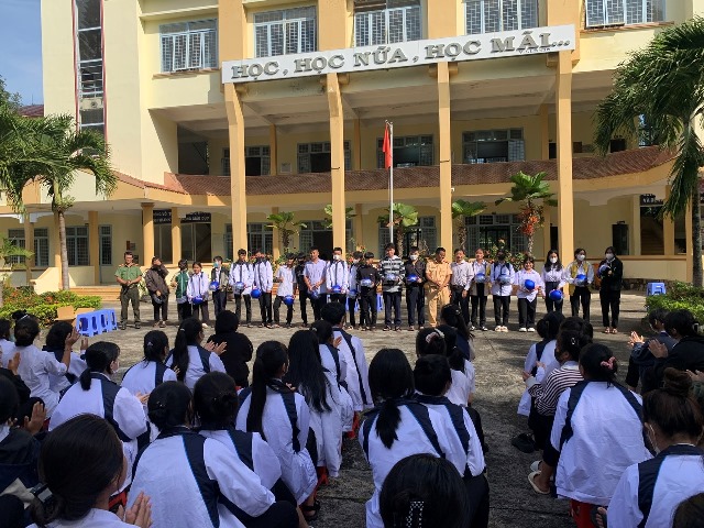 Học viên được nhận nón bảo hiểm từ các đ/c Công an tỉnh Kon Tum