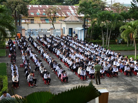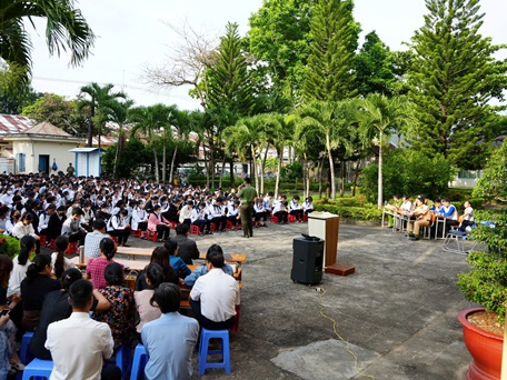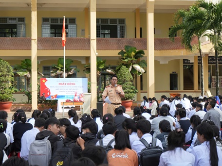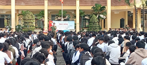 - Đồng chí Thượng úy Vũ Đình Tuấn, cán bộ Phòng Cảnh sát hình sự tuyên truyền nội dung: Ngăn chạn tội phạm, tệ nạn xã hội xâm nhập vào nhà trường và trách nhiệm của học viên.