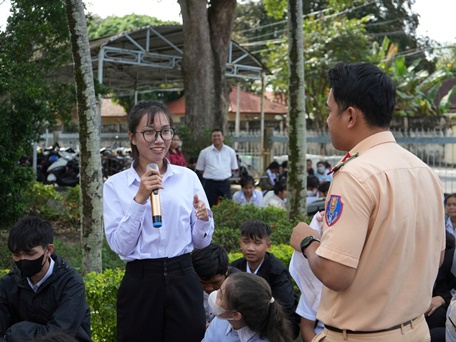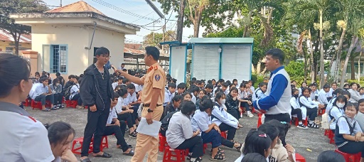 - Đồng chí Đại úy Nguyễn Xuân Hạnh, cán bộ Phòng Cảnh sát giáo thông tuyên truyền nội dung: Các quy định và xử lý các hành vi vi phạm pháp luật về đảm bảo trật tự an toàn giao thông đối với học sinh, sinh viên và cán bộ giáo viên