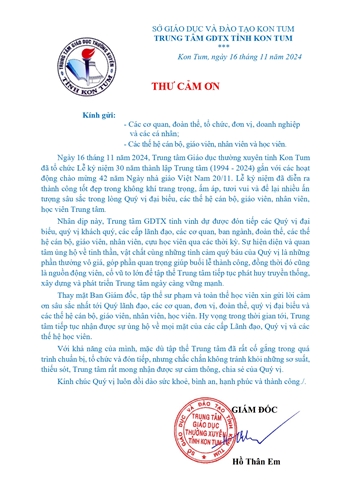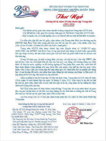 Công khai Báo cáo thường niên năm 2024 của Trung tâm GDTX tỉnh Kon Tum theo Thông tư 09/2024/TB-BGDĐT